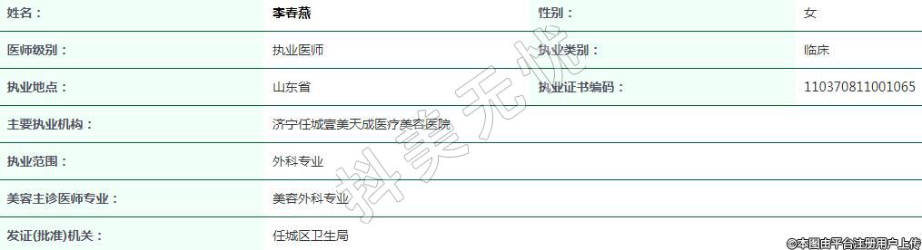 主要執(zhí)業(yè)機(jī)構(gòu):濟(jì)寧任城壹美天成醫(yī)療美容醫(yī)院
