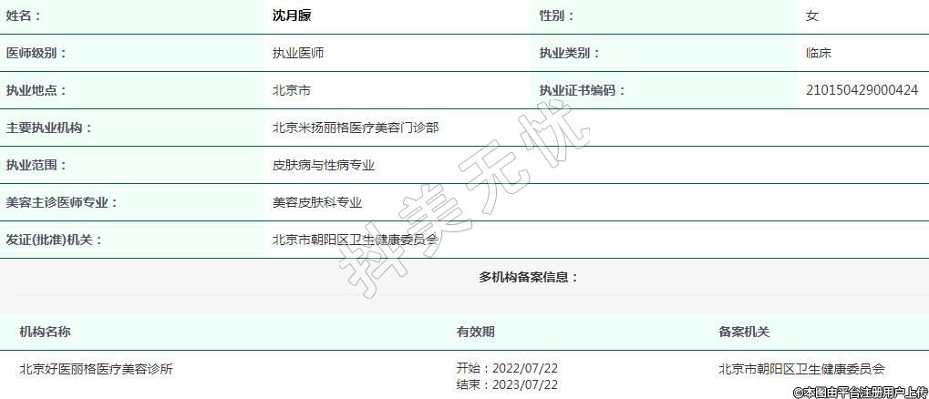 北京米揚(yáng)麗格醫(yī)療美容執(zhí)業(yè)醫(yī)師