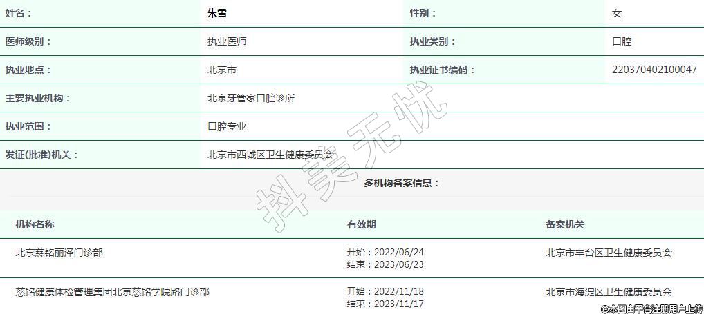主要執(zhí)業(yè)機構(gòu):北京牙管家口腔診所