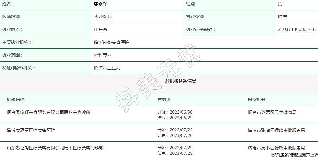 臨沂微整醫(yī)療美容執(zhí)業(yè)醫(yī)師