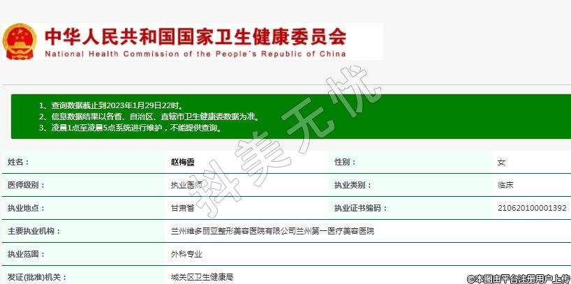 主要執(zhí)業(yè)機構:蘭州維多麗亞整形美容醫(yī)院有限公司蘭州第一醫(yī)療美容醫(yī)院