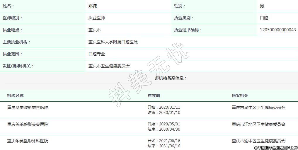 重慶華美醫(yī)療美容執(zhí)業(yè)醫(yī)師