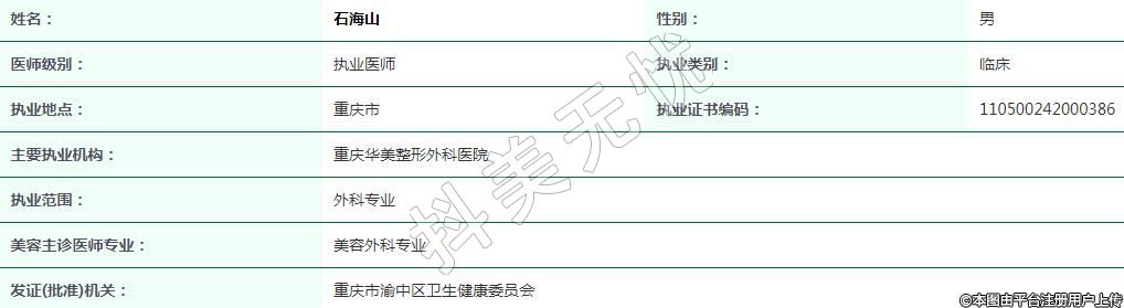 重慶華美醫(yī)療美容執(zhí)業(yè)醫(yī)師