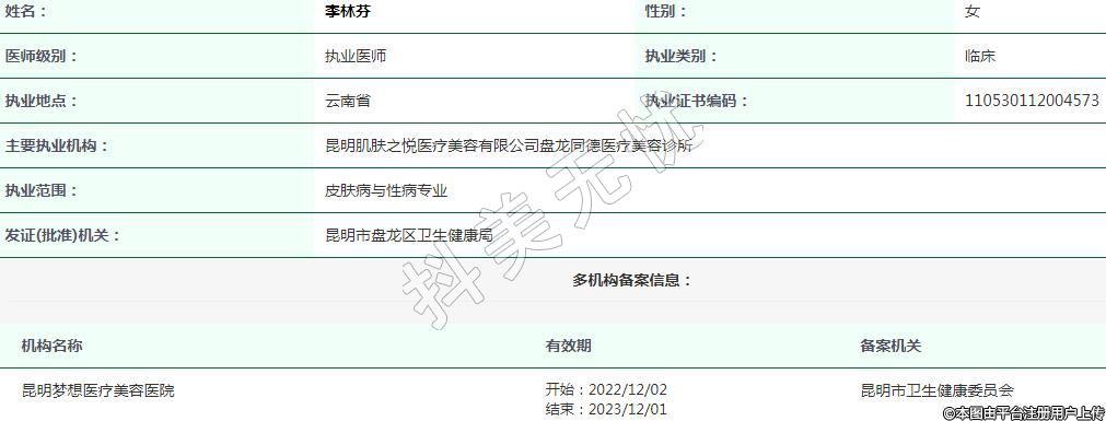 昆明夢想醫(yī)療美容執(zhí)業(yè)醫(yī)生