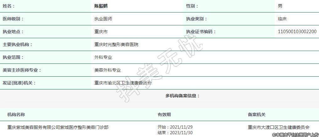 重慶紫城醫(yī)療美容執(zhí)業(yè)醫(yī)師 -