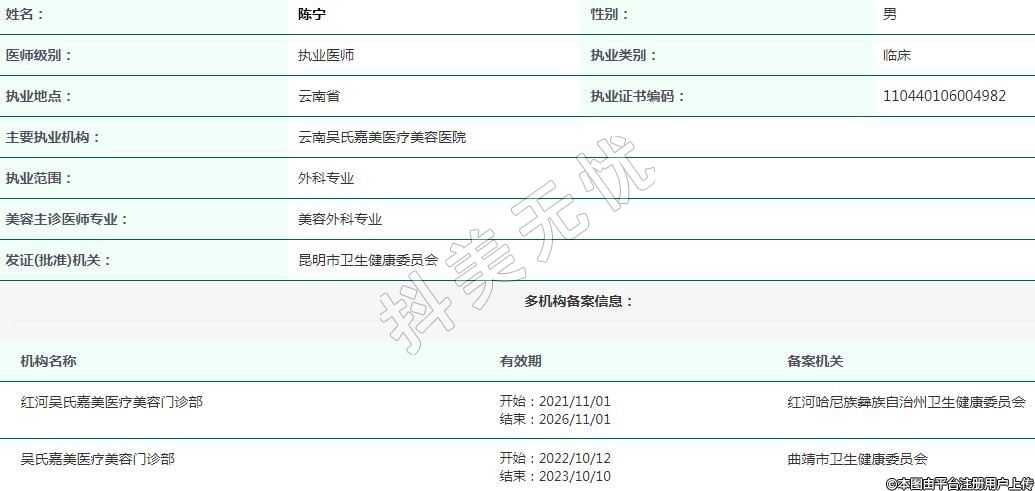 主要執(zhí)業(yè)機構(gòu):云南吳氏嘉美醫(yī)療美容醫(yī)院