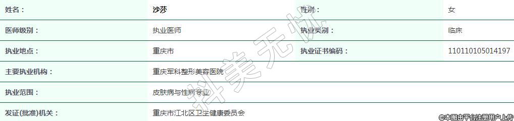 重慶軍科醫(yī)療美容執(zhí)業(yè)醫(yī)師