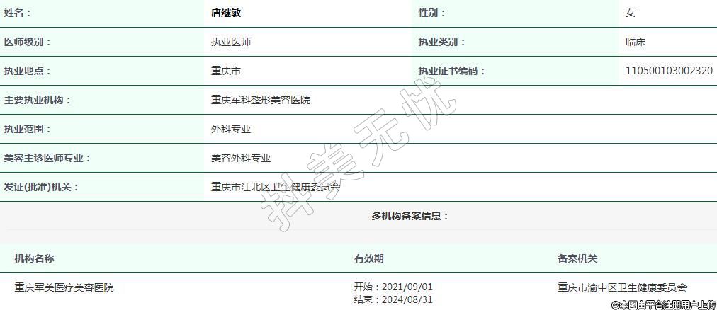 主要執(zhí)業(yè)機(jī)構(gòu):重慶軍科整形美容醫(yī)院
