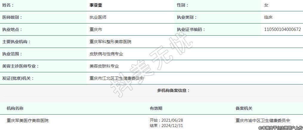 主要執(zhí)業(yè)機構(gòu):重慶軍科整形美容醫(yī)院