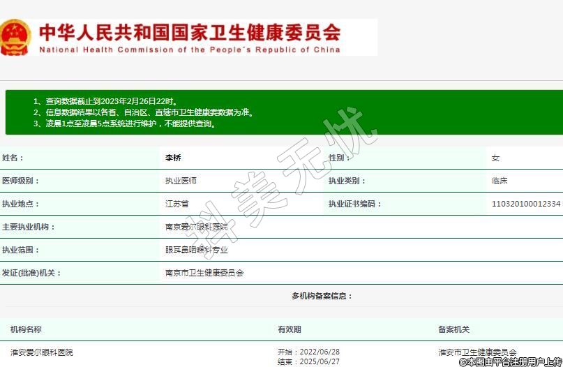 主要執(zhí)業(yè)機構:南京愛爾眼科醫(yī)院