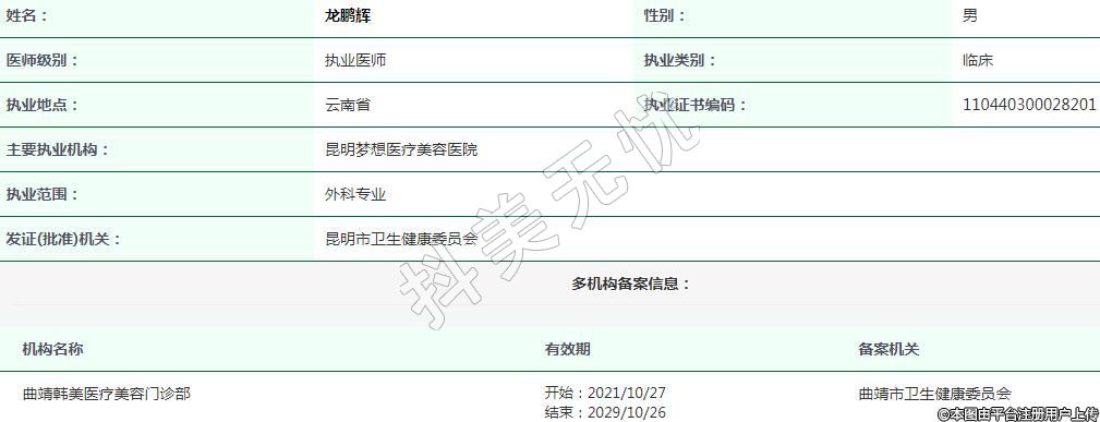 曲靖韓美醫(yī)療美容執(zhí)業(yè)醫(yī)生