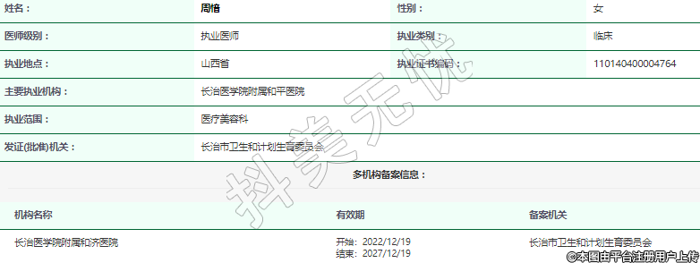 執(zhí)業(yè)范圍:醫(yī)療美容科