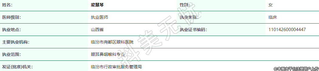 執(zhí)業(yè)范圍:眼耳鼻咽喉科專(zhuān)業(yè)