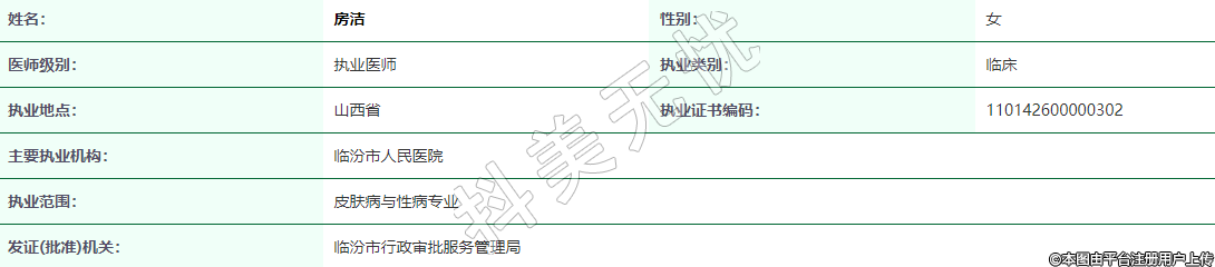 執(zhí)業(yè)范圍:皮膚病與性病專業(yè)