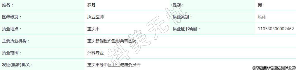重慶新銅雀臺醫(yī)療美容執(zhí)業(yè)醫(yī)師