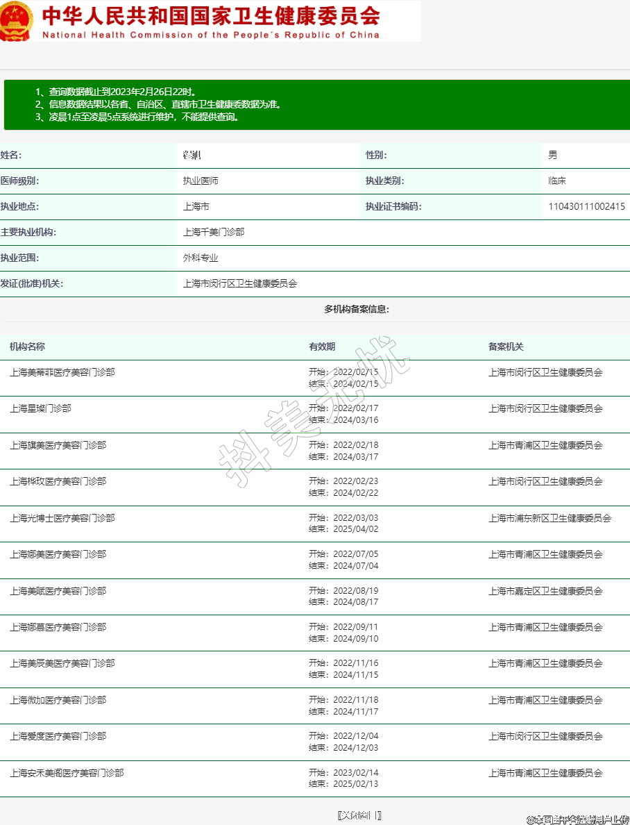 主要執(zhí)業(yè)機(jī)構(gòu):上海千美門診部