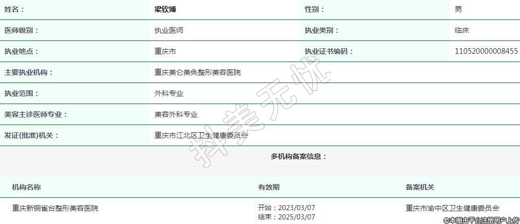 重慶美侖美奐醫(yī)療美容執(zhí)業(yè)醫(yī)師