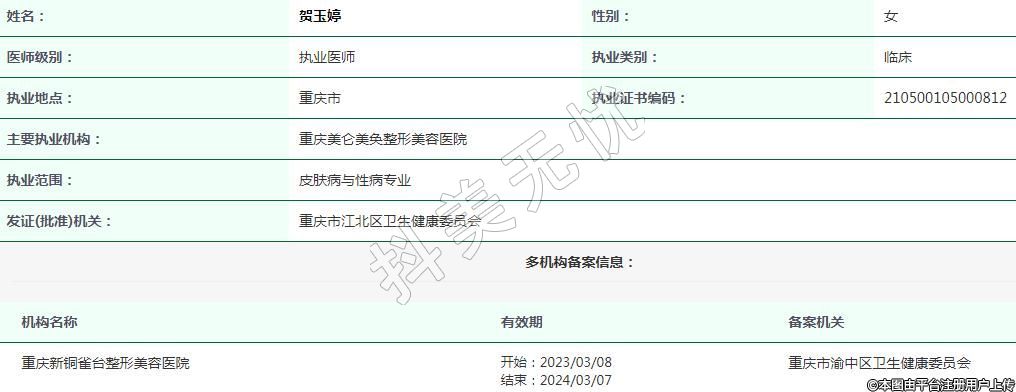 重慶新銅雀臺醫(yī)療美容執(zhí)業(yè)醫(yī)師 -