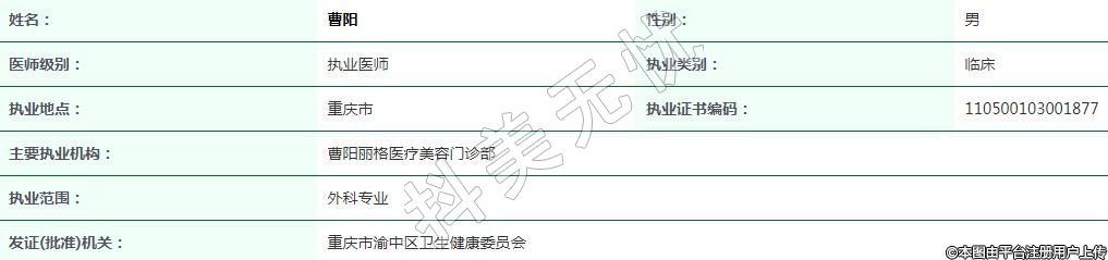 曹陽(yáng)麗格醫(yī)療美容執(zhí)業(yè)醫(yī)師