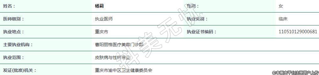 重慶曹陽(yáng)麗格醫(yī)療美容執(zhí)業(yè)醫(yī)師