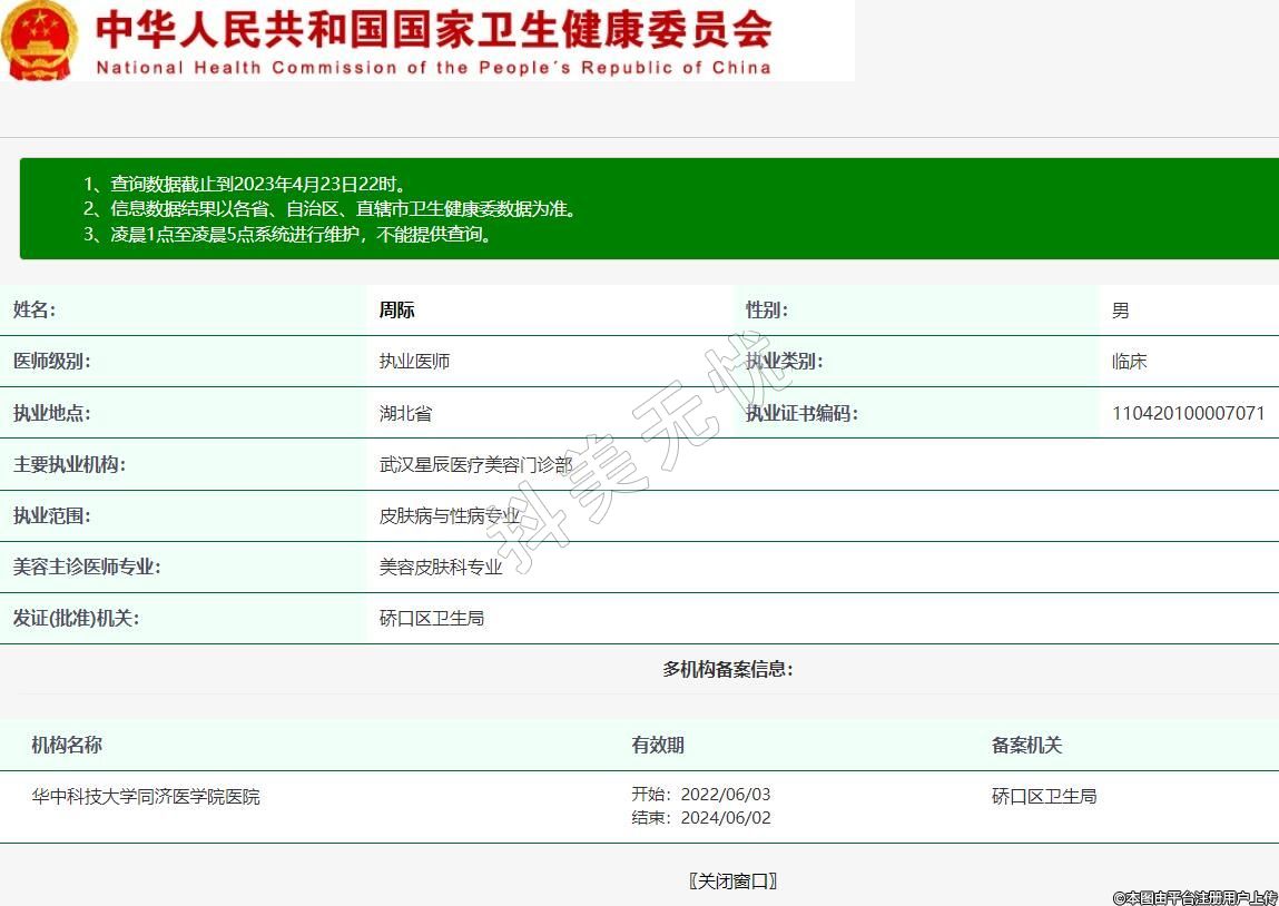 主要執(zhí)業(yè)機構(gòu):武漢星辰醫(yī)療美容門診部