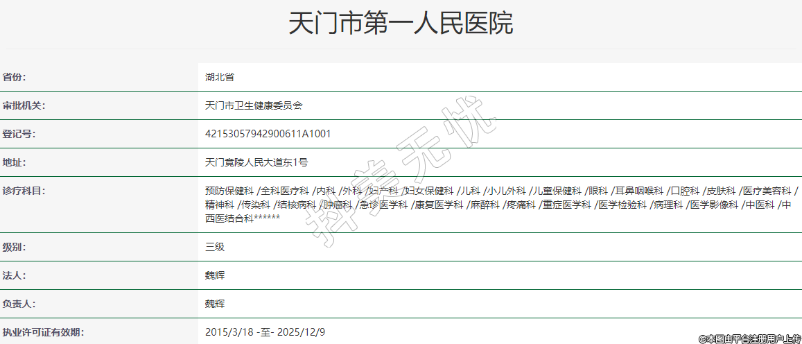 發(fā)證(批準)機關:天門市衛(wèi)生健康委員會