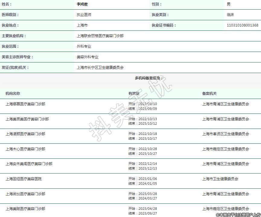 主要執(zhí)業(yè)機(jī)構(gòu):上海聯(lián)合麗格醫(yī)療美容門(mén)診部