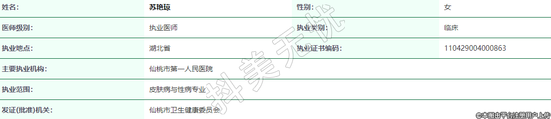 執(zhí)業(yè)范圍:皮膚病與性病專(zhuān)業(yè)