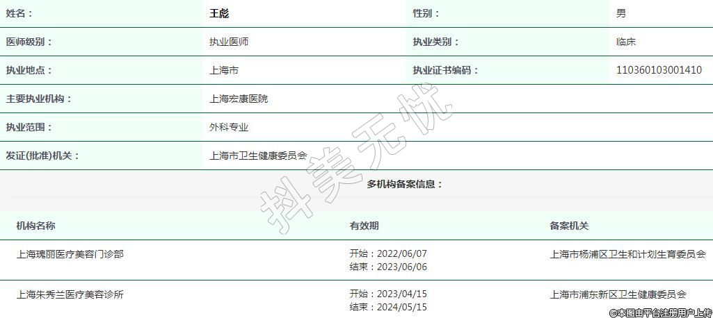 上海宏康醫(yī)院醫(yī)療美容執(zhí)業(yè)醫(yī)師