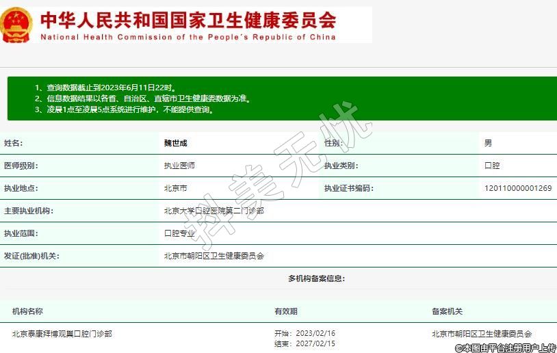 主要執(zhí)業(yè)機(jī)構(gòu):北京大學(xué)口腔醫(yī)院第二門診部