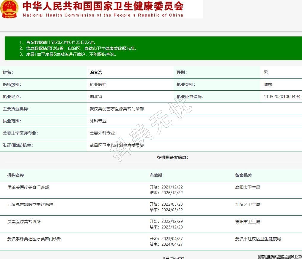主要執(zhí)業(yè)機構(gòu):武漢美麗芭莎醫(yī)療美容門診部