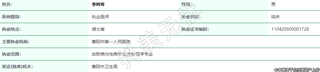 執(zhí)業(yè)范圍:皮膚病與性病專業(yè);全科醫(yī)學(xué)專業(yè)
