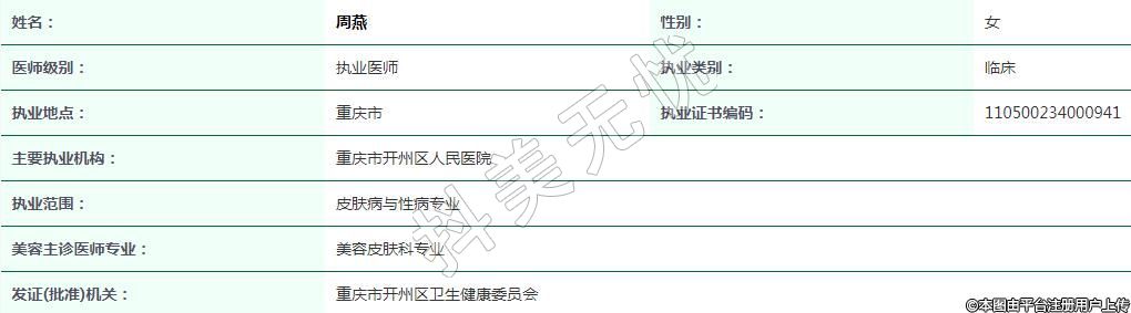 重慶市開州區(qū)人民醫(yī)院醫(yī)療美容執(zhí)業(yè)醫(yī)師
