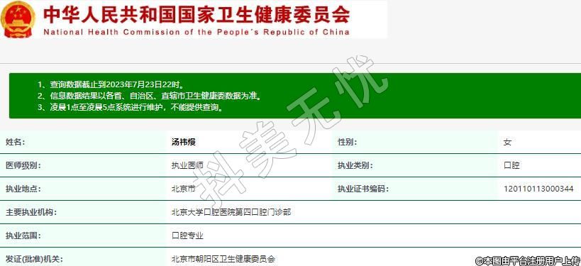 執(zhí)業(yè)范圍:口腔專(zhuān)業(yè)
