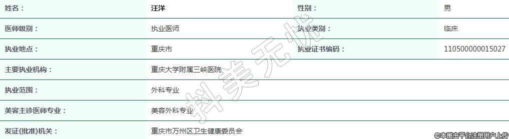 重慶大學附屬三峽醫(yī)院整形外科執(zhí)業(yè)醫(yī)師