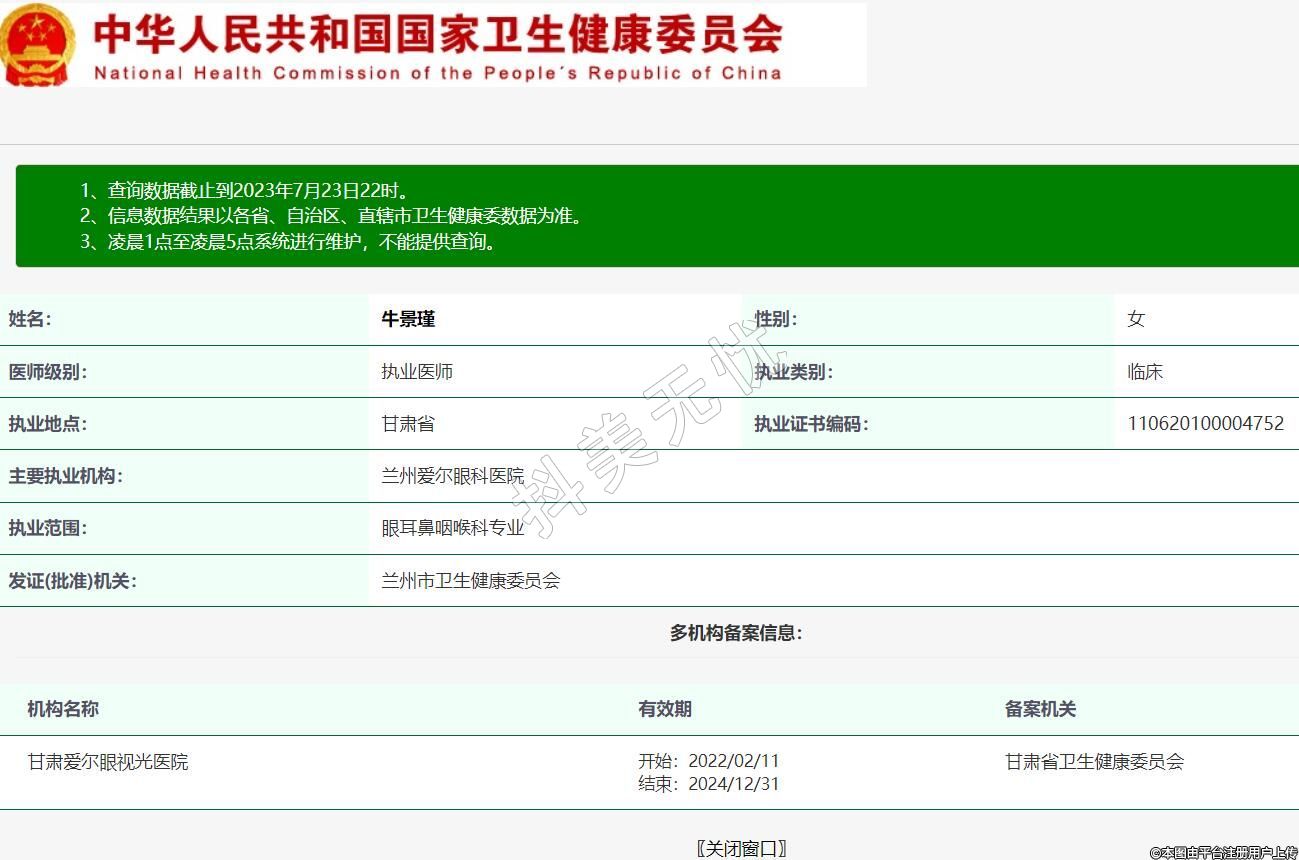 主要執(zhí)業(yè)機(jī)構(gòu):蘭州愛爾眼科醫(yī)院