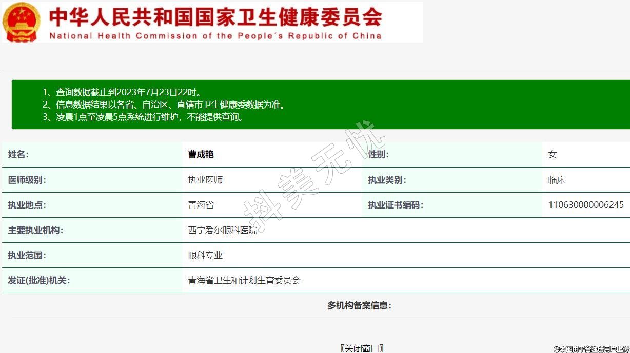 主要執(zhí)業(yè)機(jī)構(gòu):西寧愛爾眼科醫(yī)院
