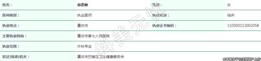 主要執(zhí)業(yè)機構(gòu):重慶市第七人民醫(yī)院