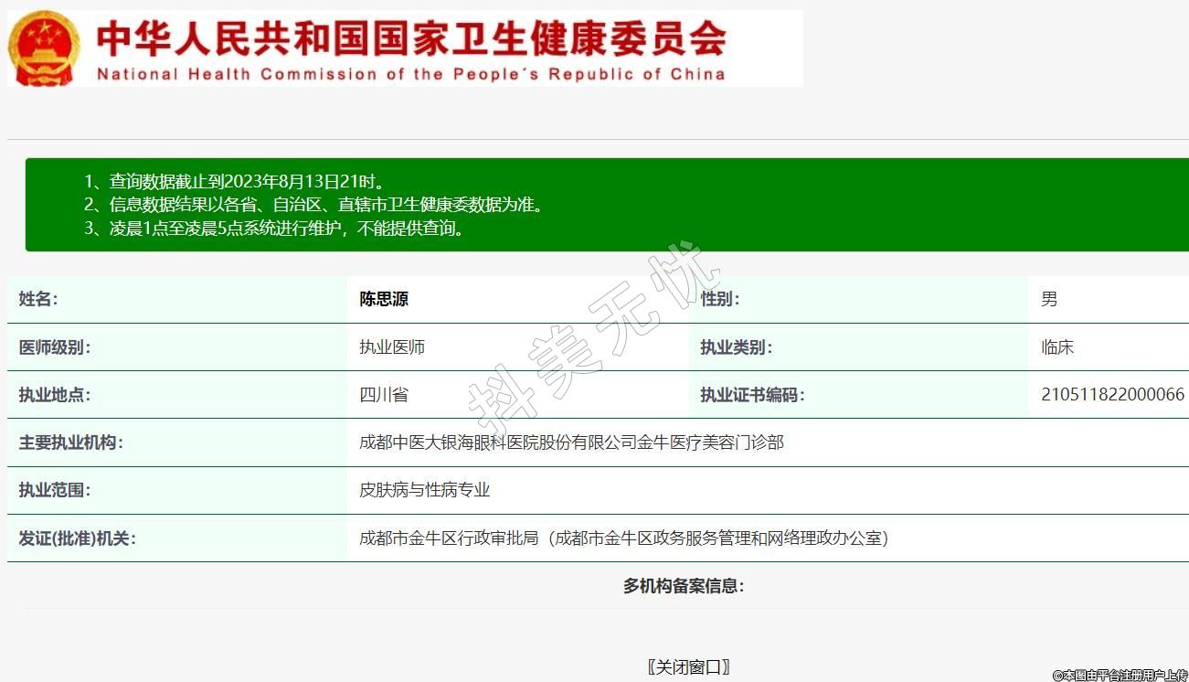 主要執(zhí)業(yè)機構(gòu):成都中醫(yī)大銀海眼科醫(yī)院股份有限公司金牛醫(yī)療美容門診部