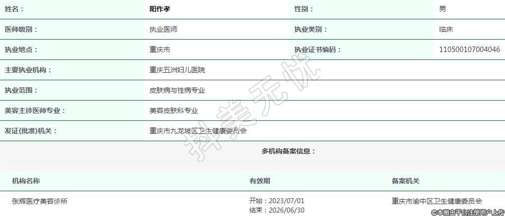 重慶張輝醫(yī)療美容執(zhí)業(yè)醫(yī)師 -