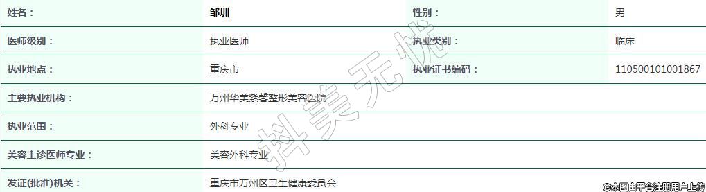 萬州華美紫馨整形美容執(zhí)業(yè)醫(yī)師