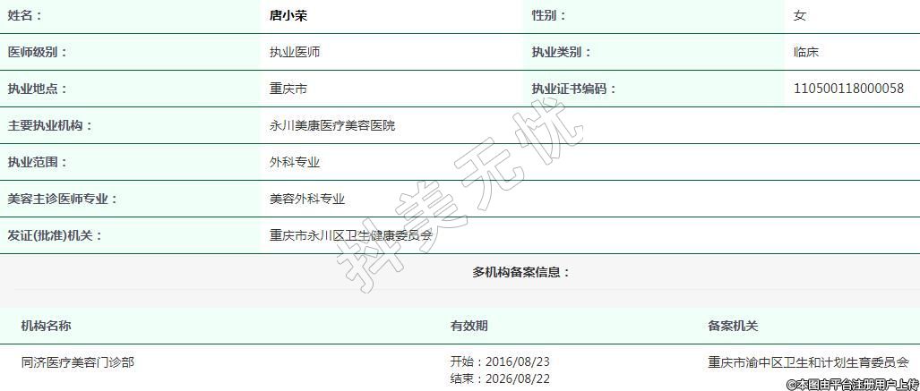永川美康醫(yī)療美容執(zhí)業(yè)醫(yī)師