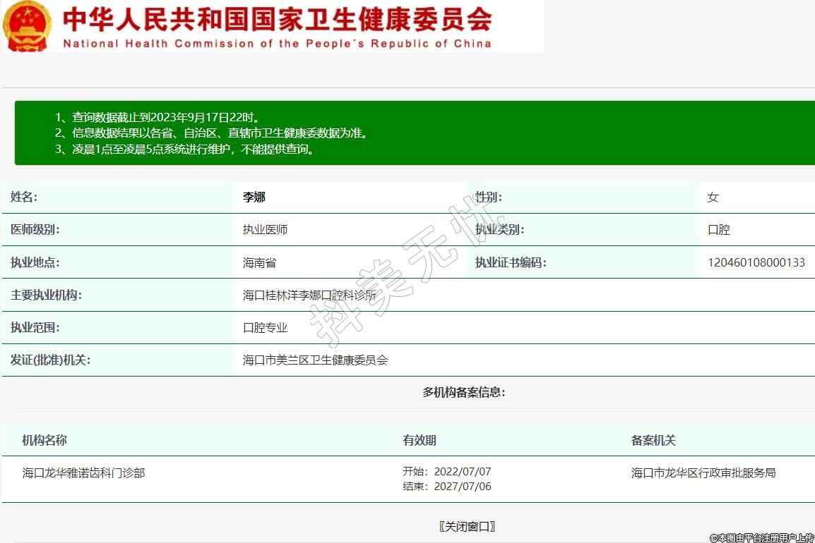 主要執(zhí)業(yè)機構(gòu):海口桂林洋李娜口腔科診所