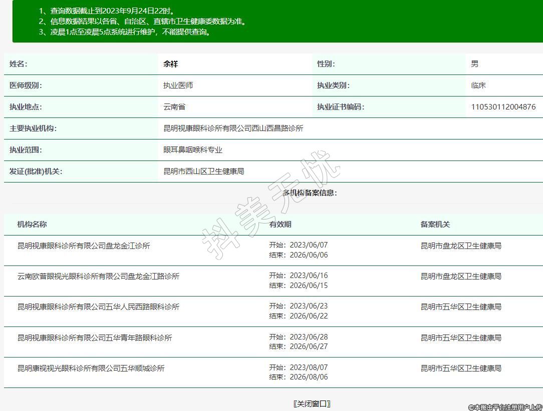 主要執(zhí)業(yè)機(jī)構(gòu):昆明視康眼科診所有限公司西山西昌路診所