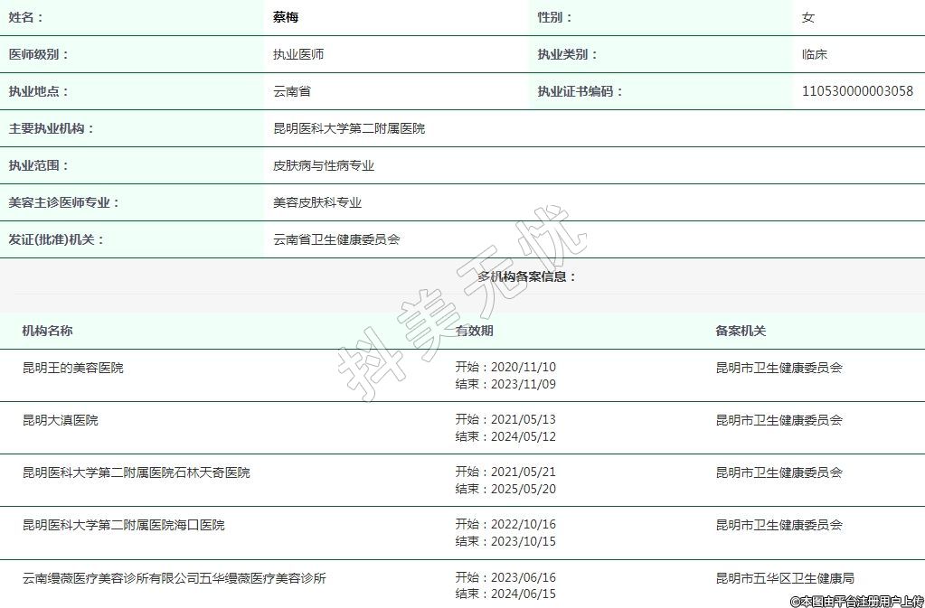 昆明王的美容執(zhí)業(yè)醫(yī)師