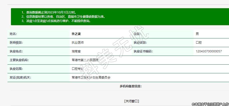 執(zhí)業(yè)范圍:口腔專(zhuān)業(yè)