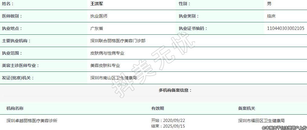 主要執(zhí)業(yè)機構(gòu):深圳聯(lián)合麗格醫(yī)療美容門診部