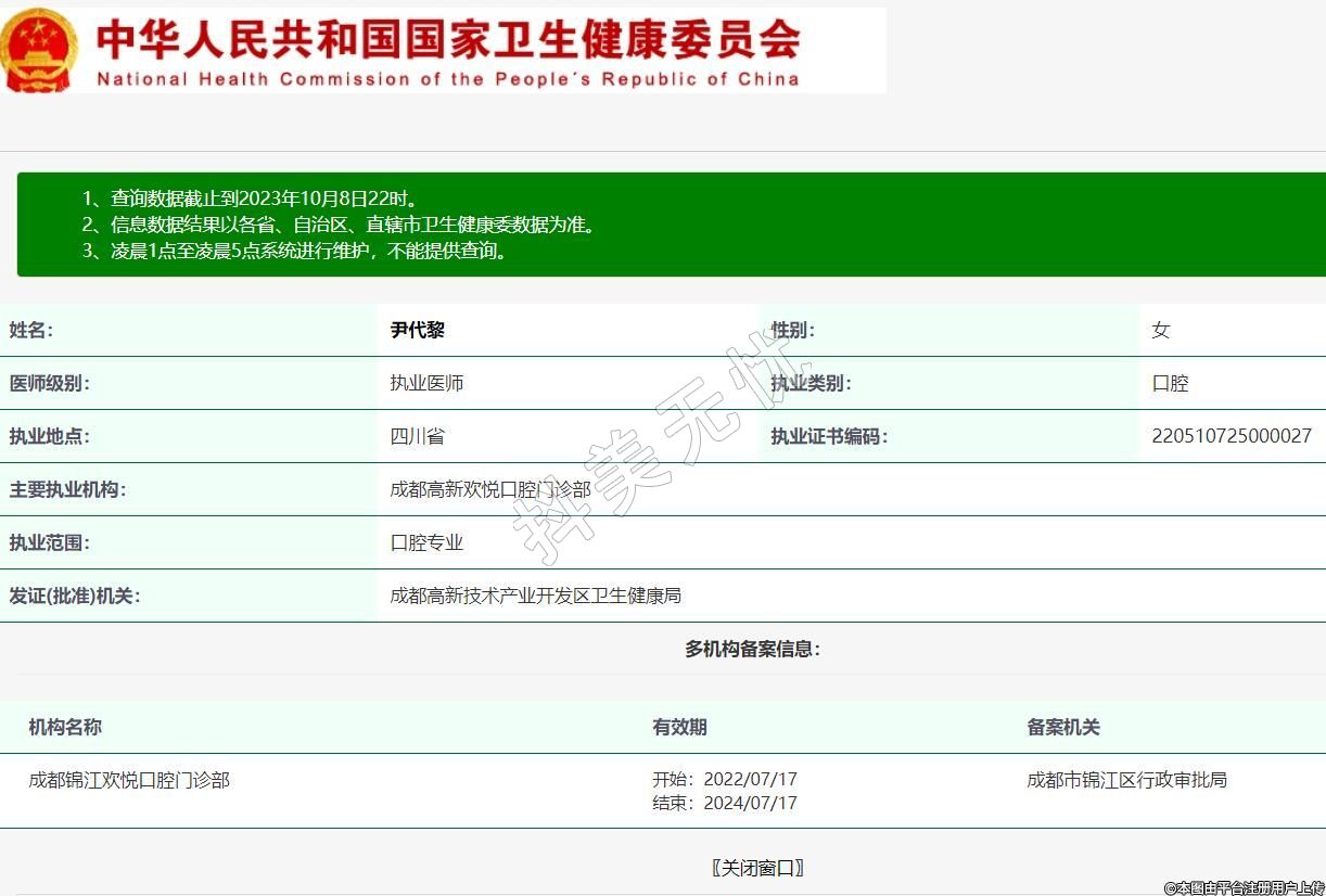 主要執(zhí)業(yè)機構(gòu):成都高新歡悅口腔門診部