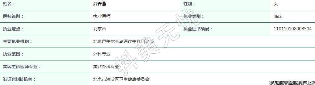北京伊美爾長島醫(yī)療美容執(zhí)業(yè)醫(yī)生