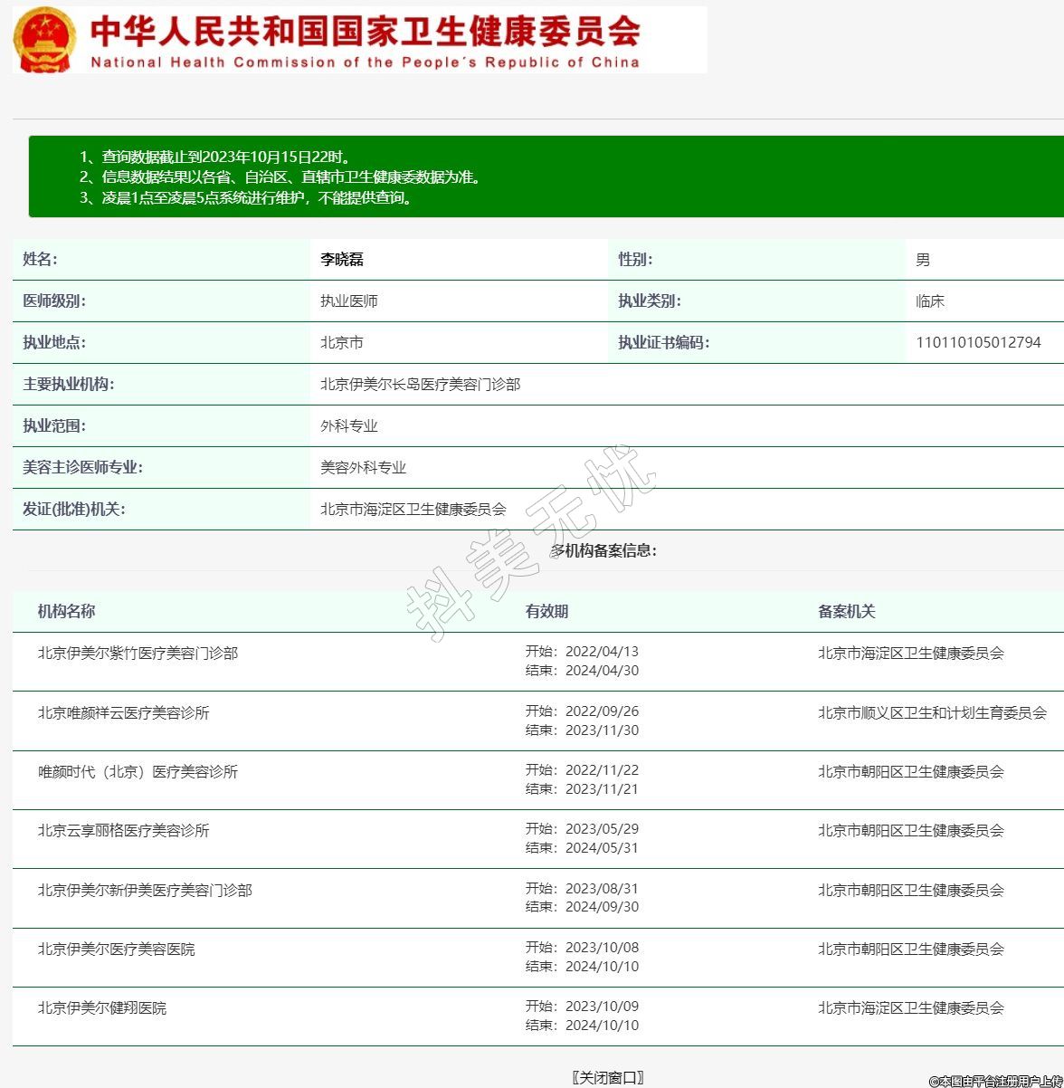 北京伊美爾長島醫(yī)療美容執(zhí)業(yè)醫(yī)生